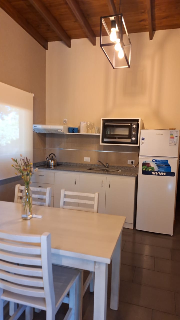 Capacidad para 3 personas. 1 Dormitorio. Living con 2 camas. Cocina-comedor. 1 baño. Aire Acondicionado Frío-calor en el Living. Deck privado con parrilla. Servicio de TV con cable y WiFi individual por fibra óptica. Todas las cabañas tienen alarma individual.