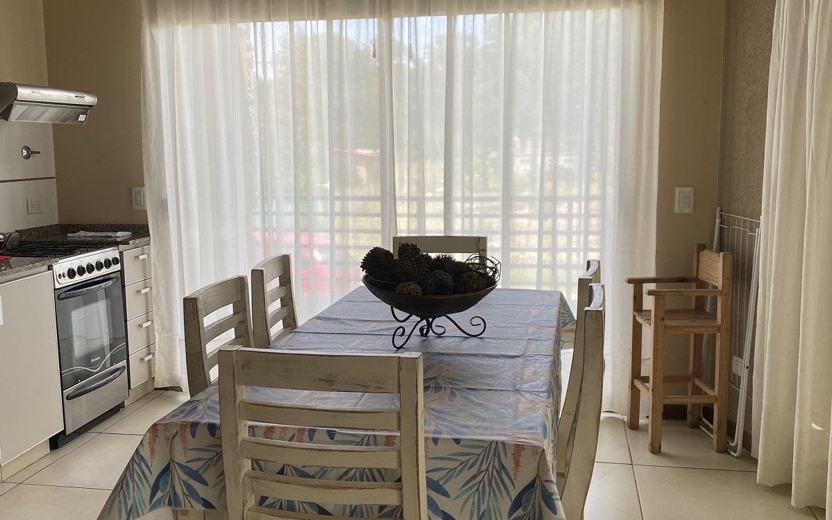 Capacidad para 6 personas, con Aire Acondicionado y calefacción. Consta de 2 dormitorios, dos baños, 1 baño con Jacuzzi, living, comedor, cocina y parrilla. Servicio de TV y WiFi por fibra óptica.