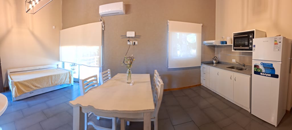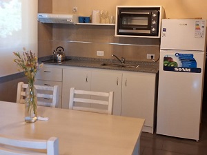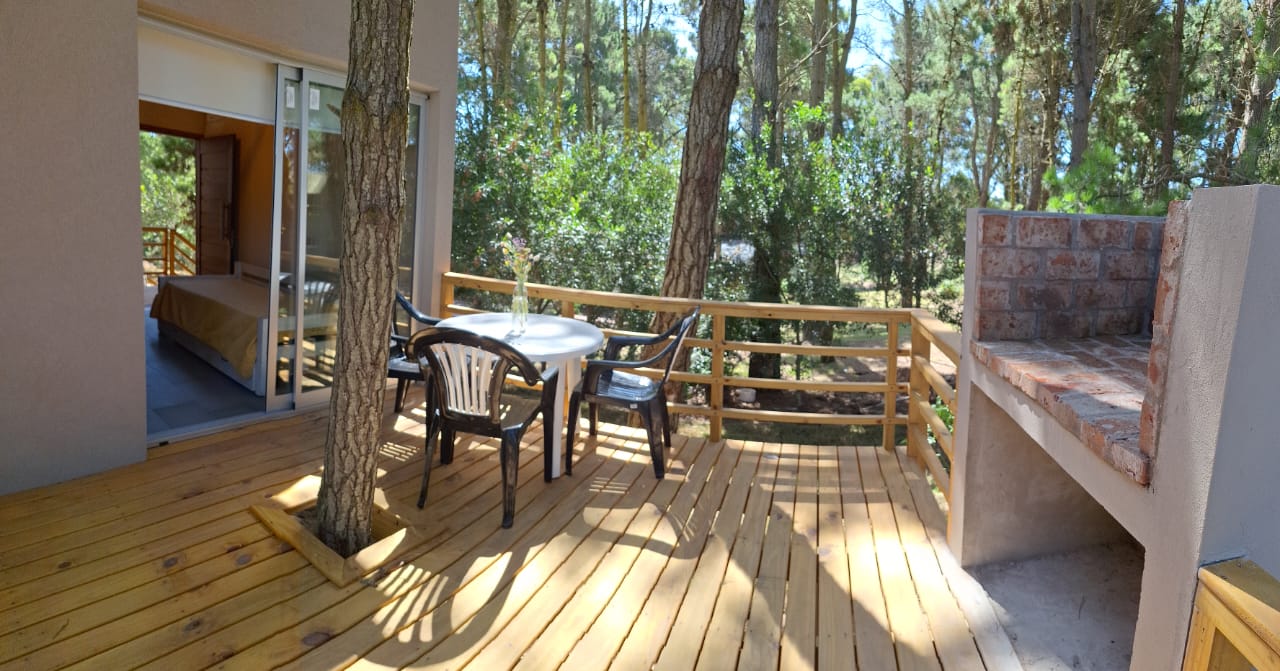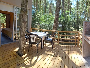Capacidad para 3 personas. 1 Dormitorio. Living con 2 camas. Cocina-comedor. 1 baño. Aire Acondicionado Frío-calor en el Living. Deck privado con parrilla. Servicio de TV con cable y WiFi individual por fibra óptica. Todas las cabañas tienen alarma individual.